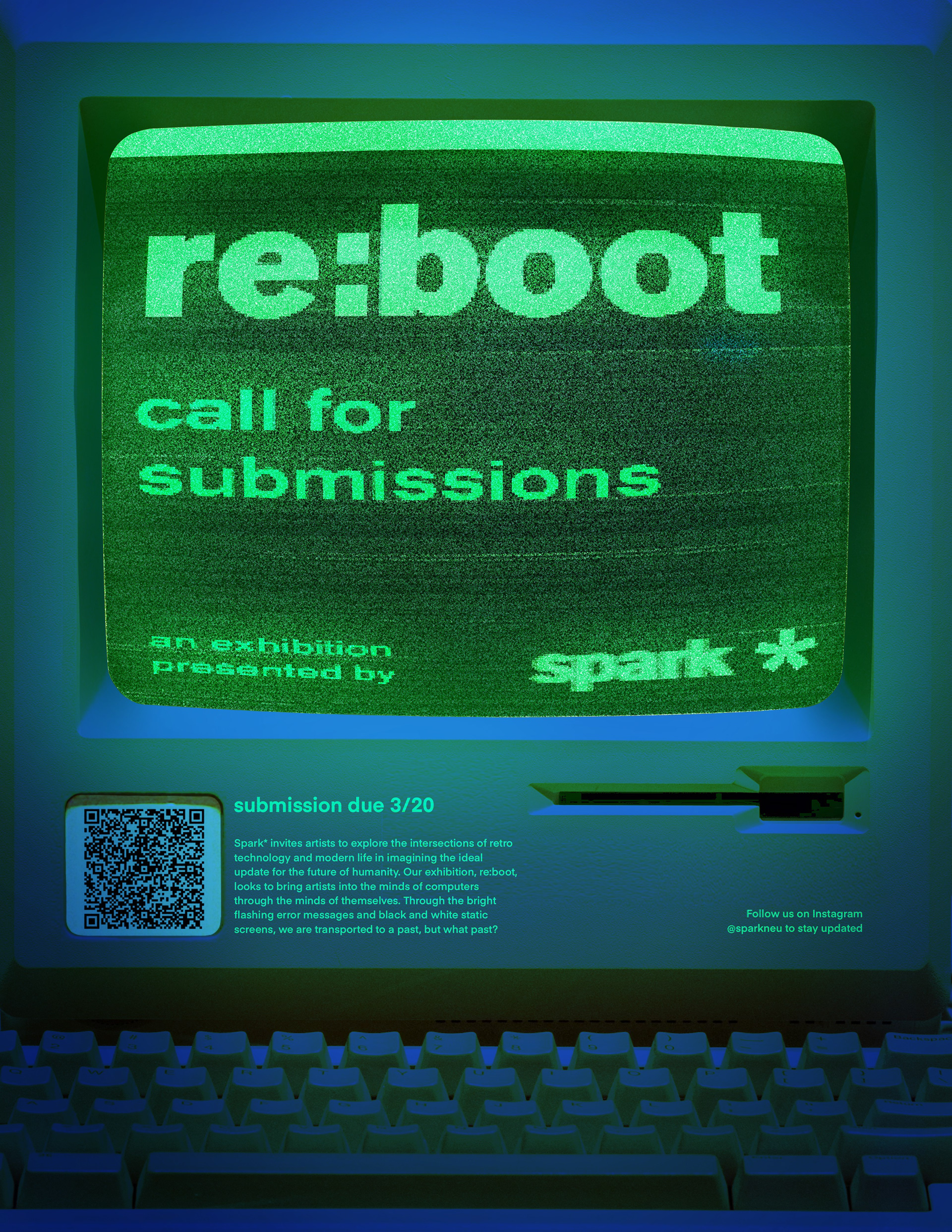 Spark* invites artists to explore the intersections of retro technology and modern life in imagining the ideal update for the future of humanity. Our exhibition, re:boot, looks to bring artists into the minds of computers through the minds of themselves. Through the